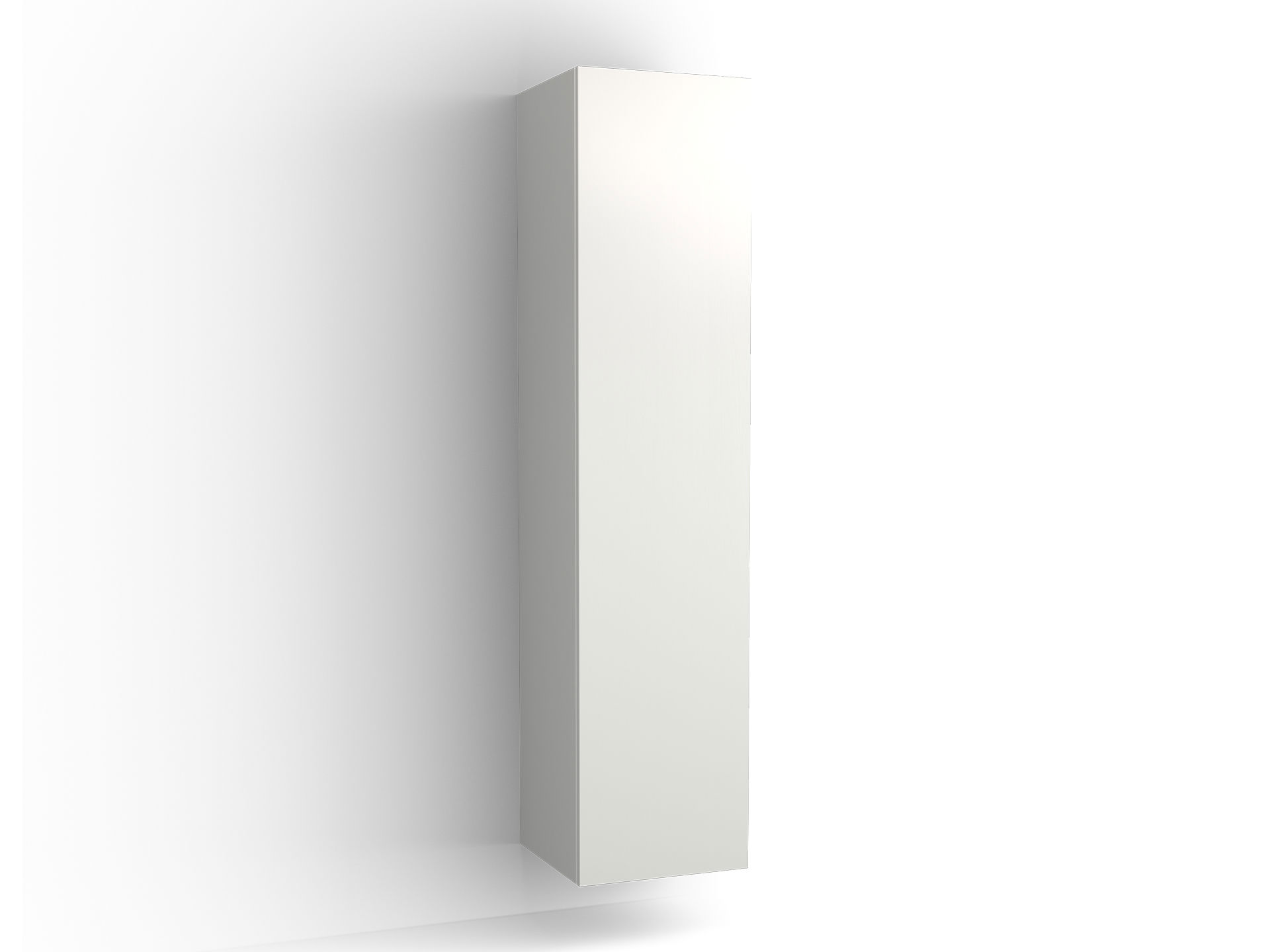Högskåp i bredd 400 mm. Valfri hängning av lucka. En fast hylla och fyra flyttbara glashyllor. Handtag ingår ej.
