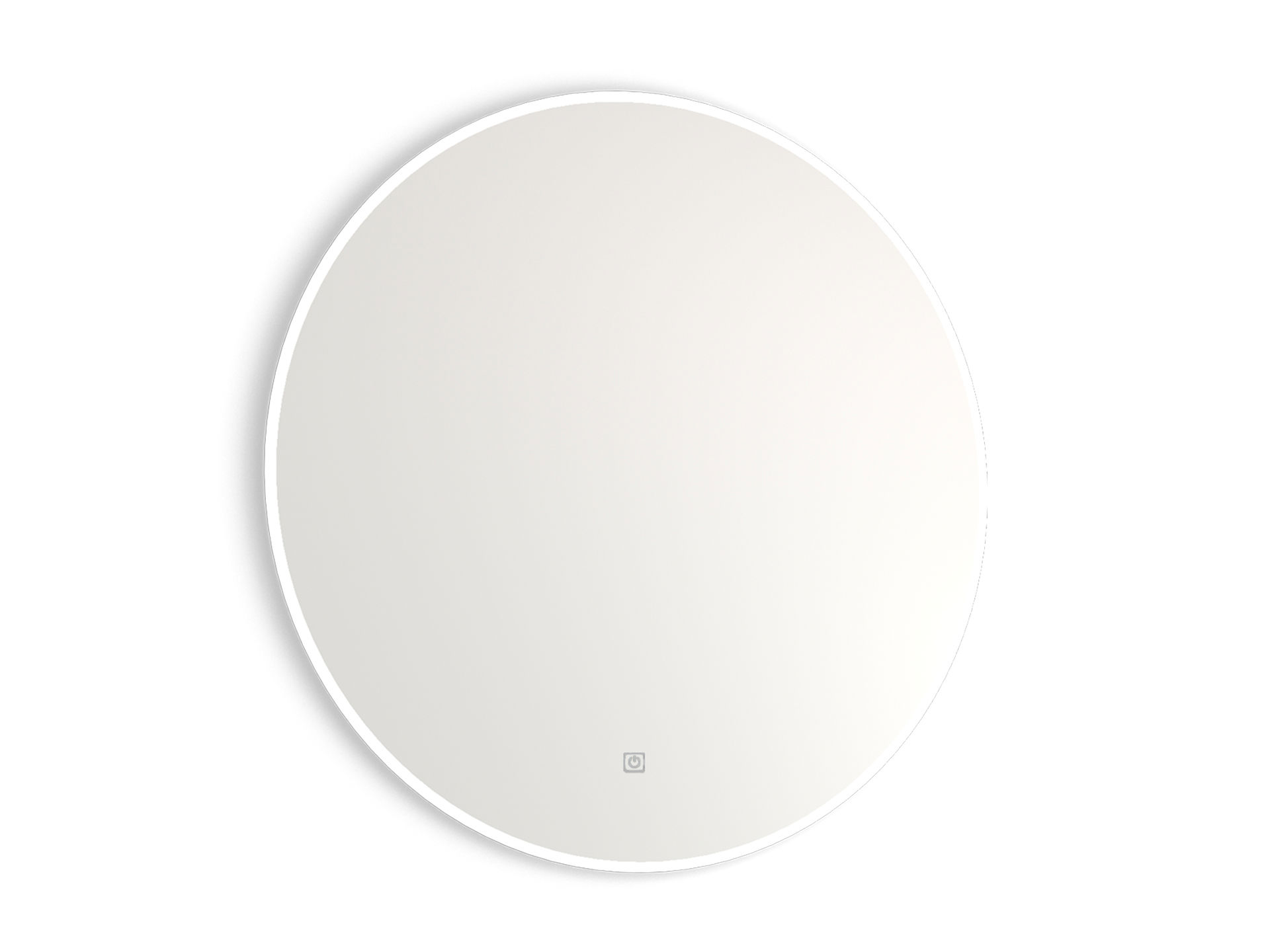 Spegel Mälaren är en rund spegel med en LED-ljuskant längs ytterkant av spegeln. Utrymme finns bakom spegeln för koppling av el.