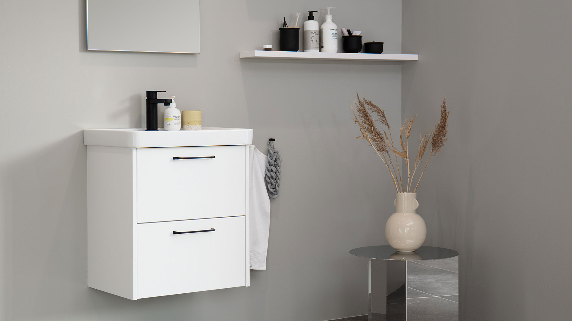 För dig som vill ha ett litet och distinkt badrum med stark möbelkänsla.