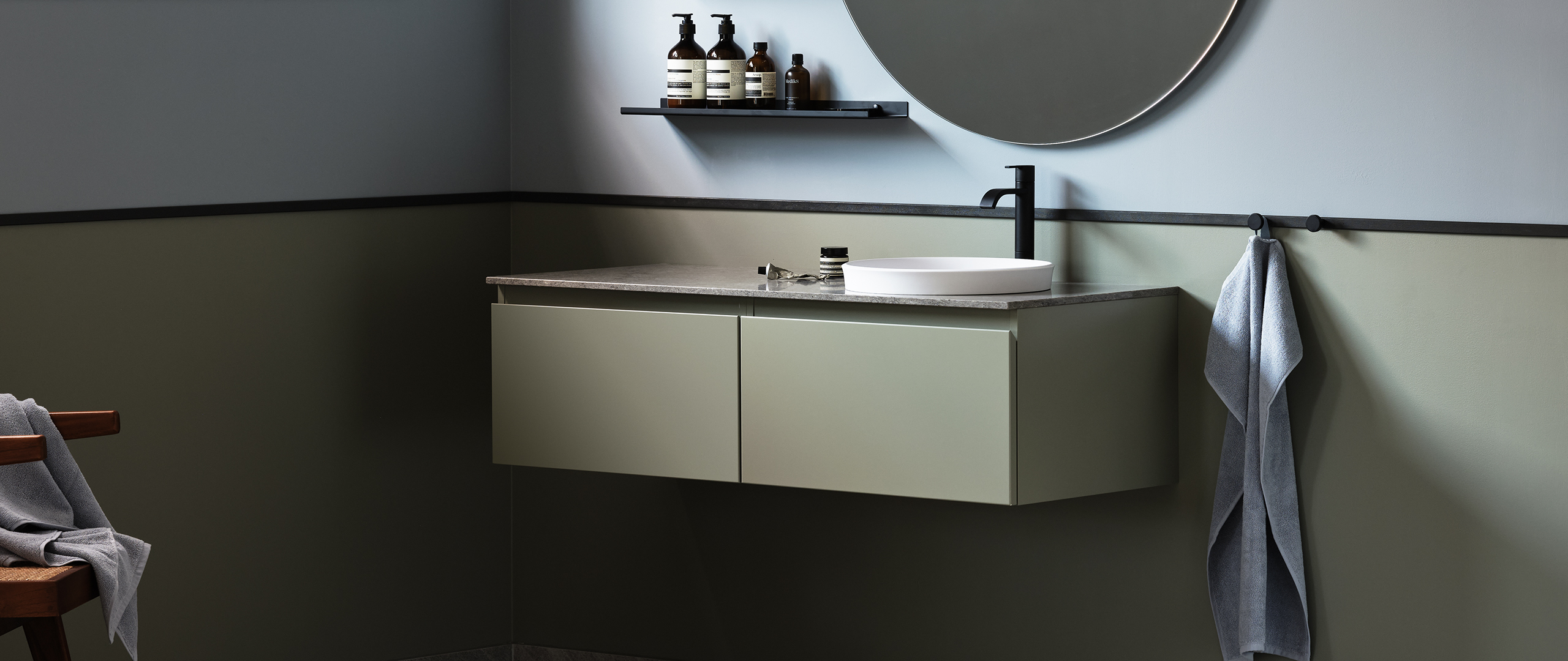 Flow är en innovativ badrumsserie med uttrycksfulla och rena linjer som finns i hela sju olika bredder. Du kan välja mellan tvättstället Flow i Top Solid som har en slitstark yta. Vill du ha ett lite annorlunda uttryck kan du istället välja det seminedfällda tvättstället Zone i oval eller rund form. Till det kommer alla förvaringslösningar du kan önska. Passar dig som vill ha ett komplett badrum med omsorgsfullt genomtänkta detaljer.