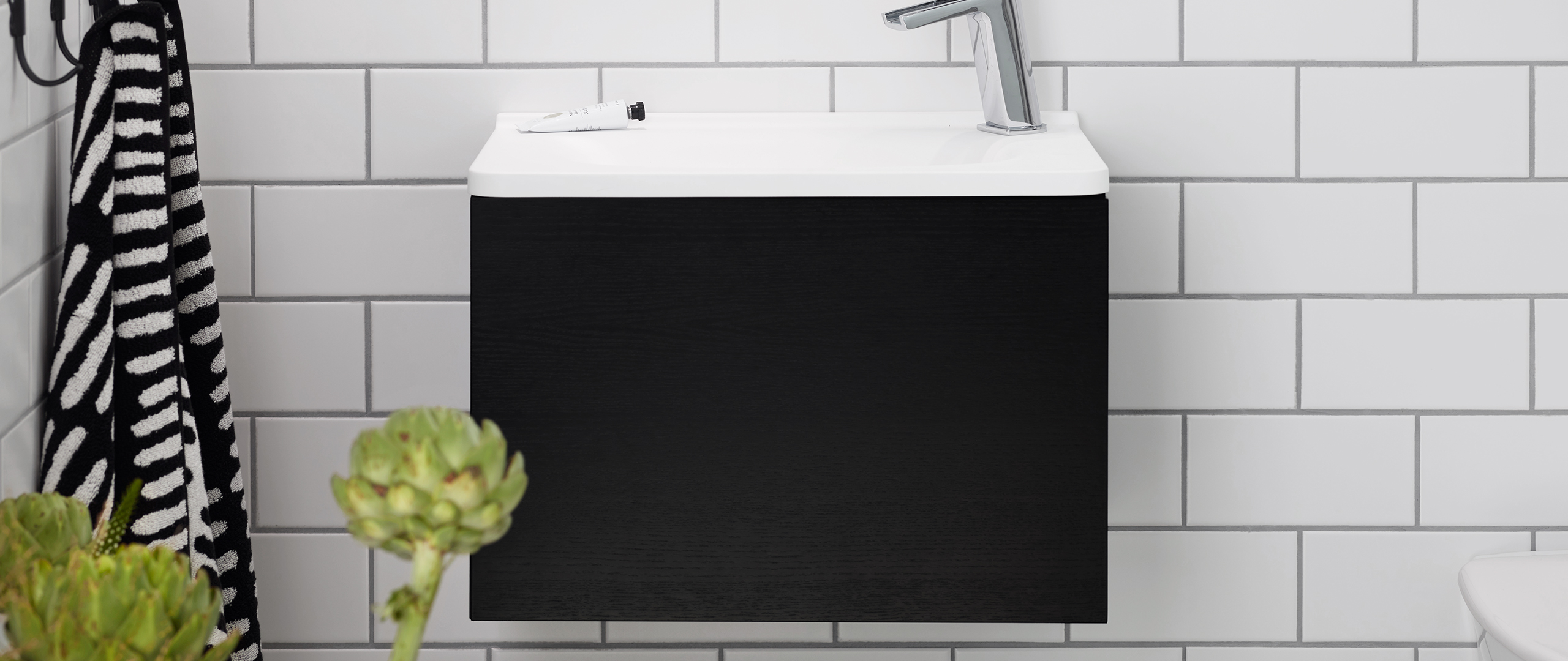 Fanerad svartmålad ask är inspirerad av naturen och skapar en taktil träkänsla. Faner är ett levande material och har alltid ett unikt utseende. Svartmålad ask passar särskilt bra med andra dramatiska färger – och för dig som vill ha en inredning som går i en modern och elegant stil. En elegant och dramatisk kulör.