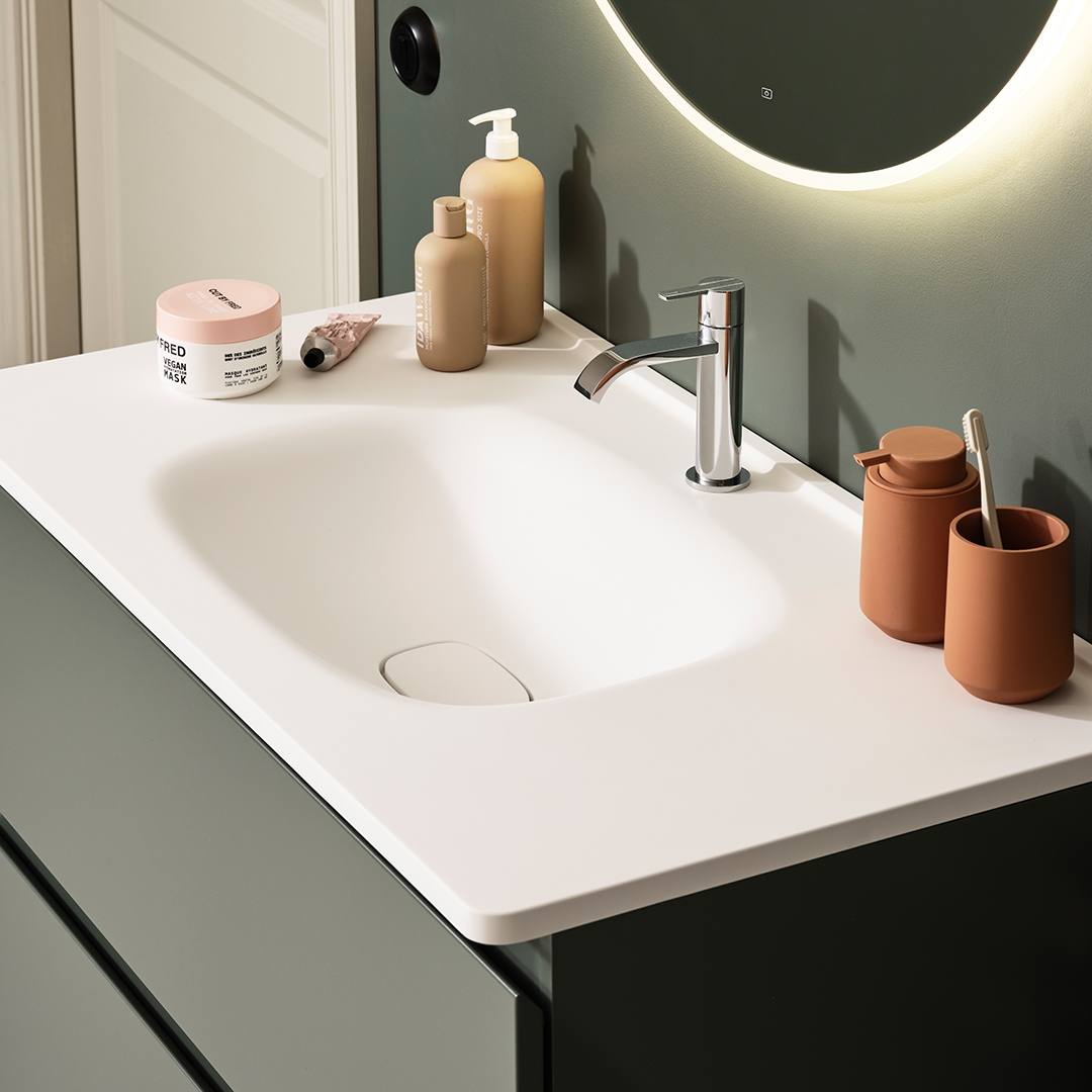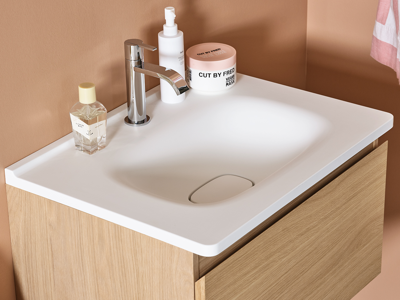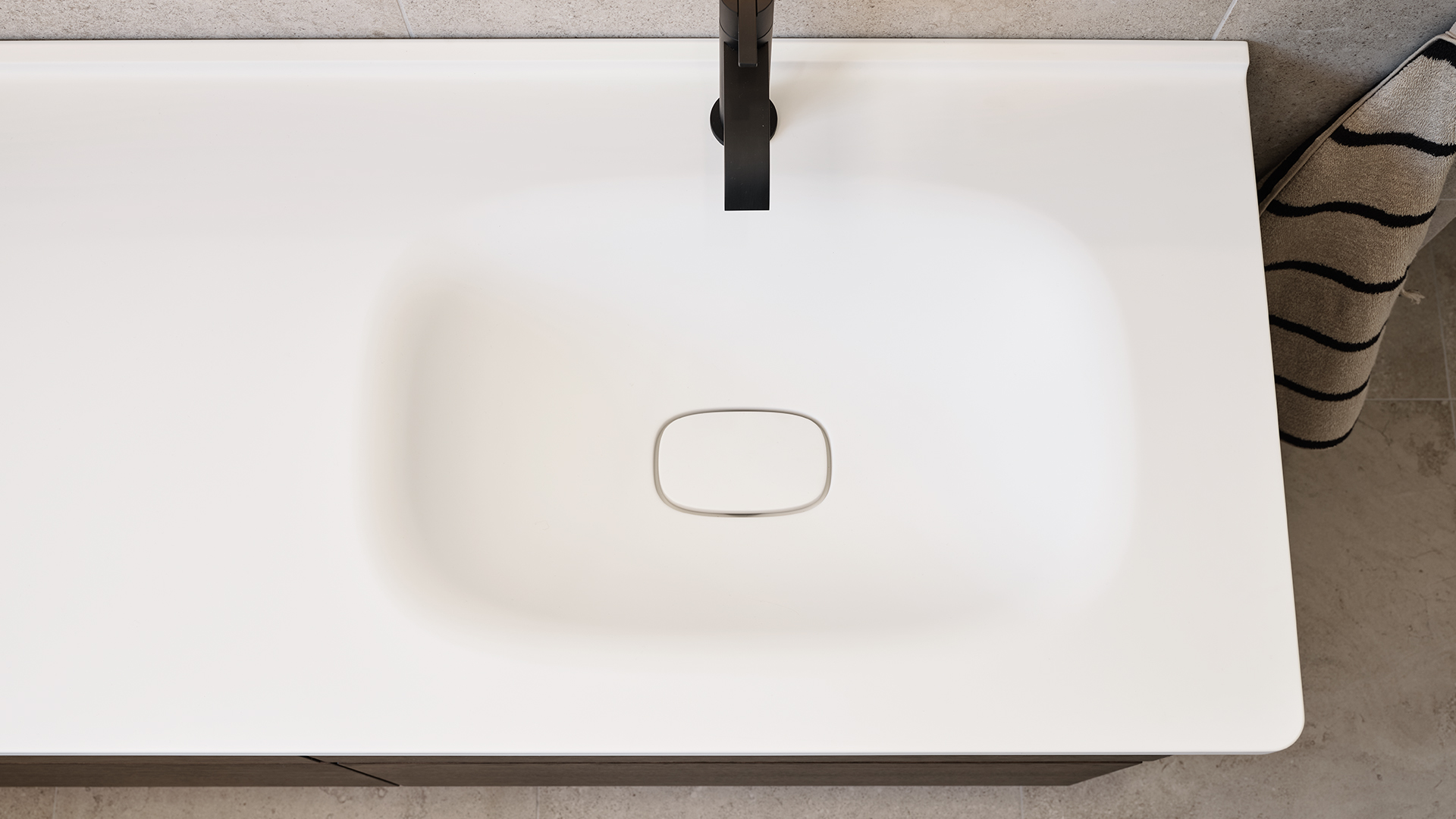 Ett tvättställ med mjuka former och ett harmoniskt uttryck.