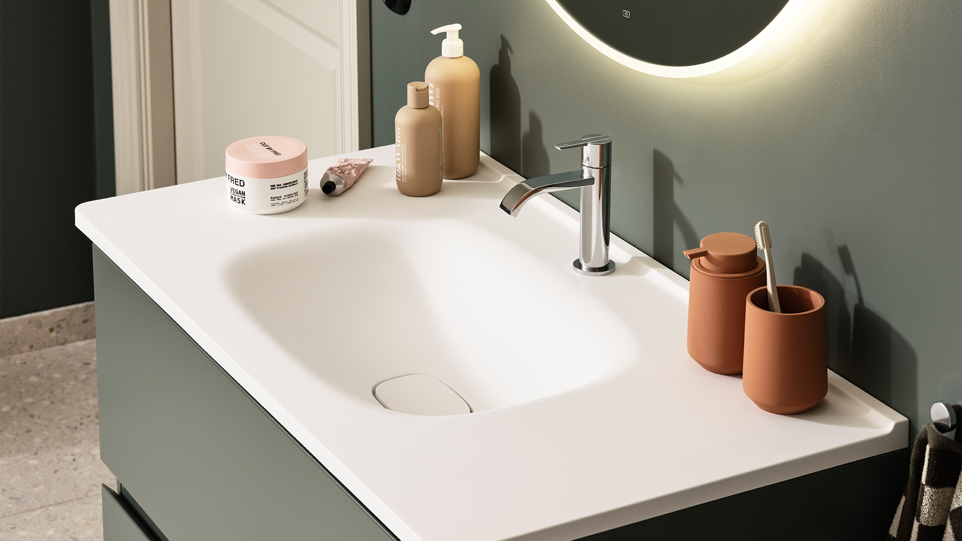 Ett stilrent tvättställ med raka linjer och optimala proportioner som passar perfekt i alla badrum.