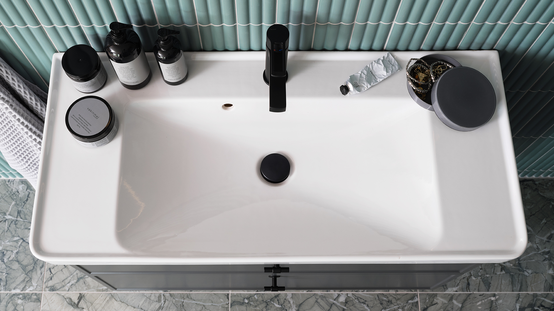 Ett stilrent tvättställ som ger dig extra utrymme i badrummet.