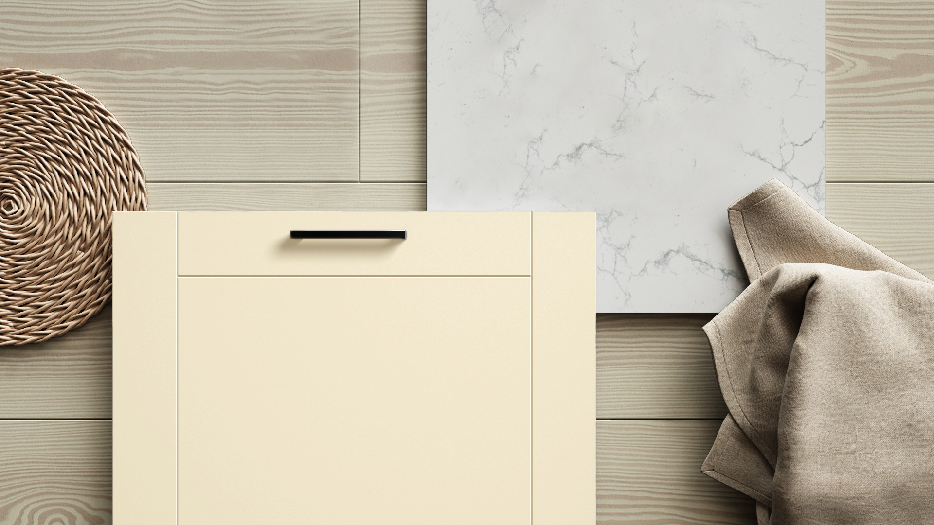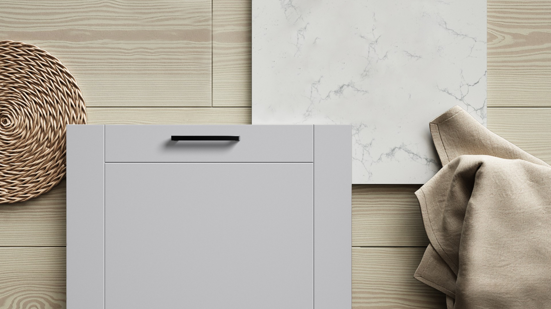 Målad lucka av 16 mm MDF-board med frästa spår och svagt rundad kant. Levereras i alla kulörer mot kulörtillägg med några få undantag. Finns också i vitrin med klarglas.