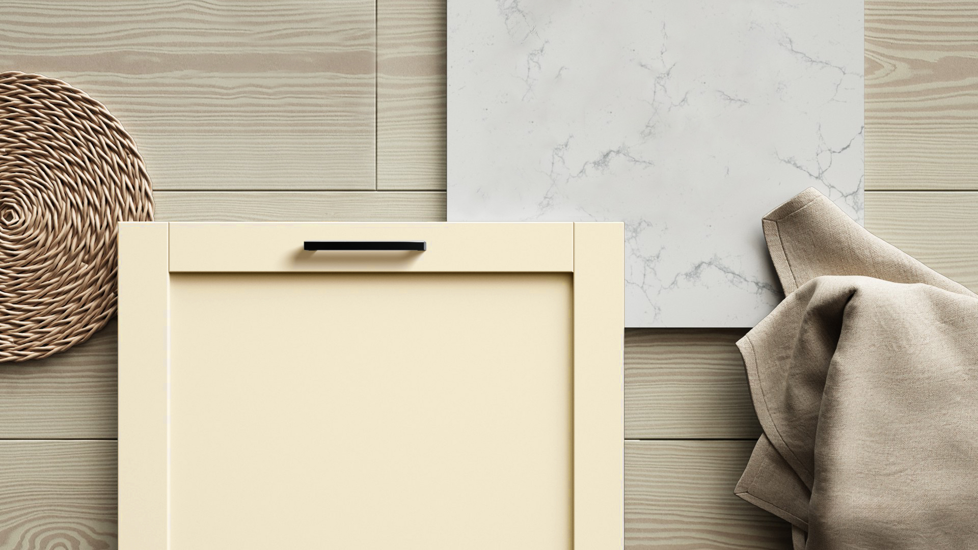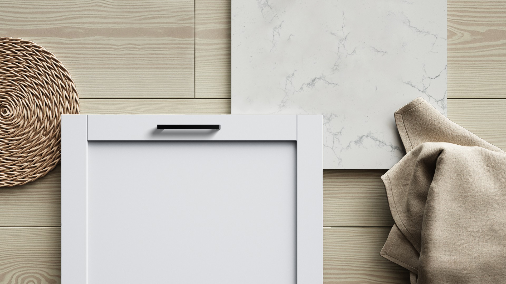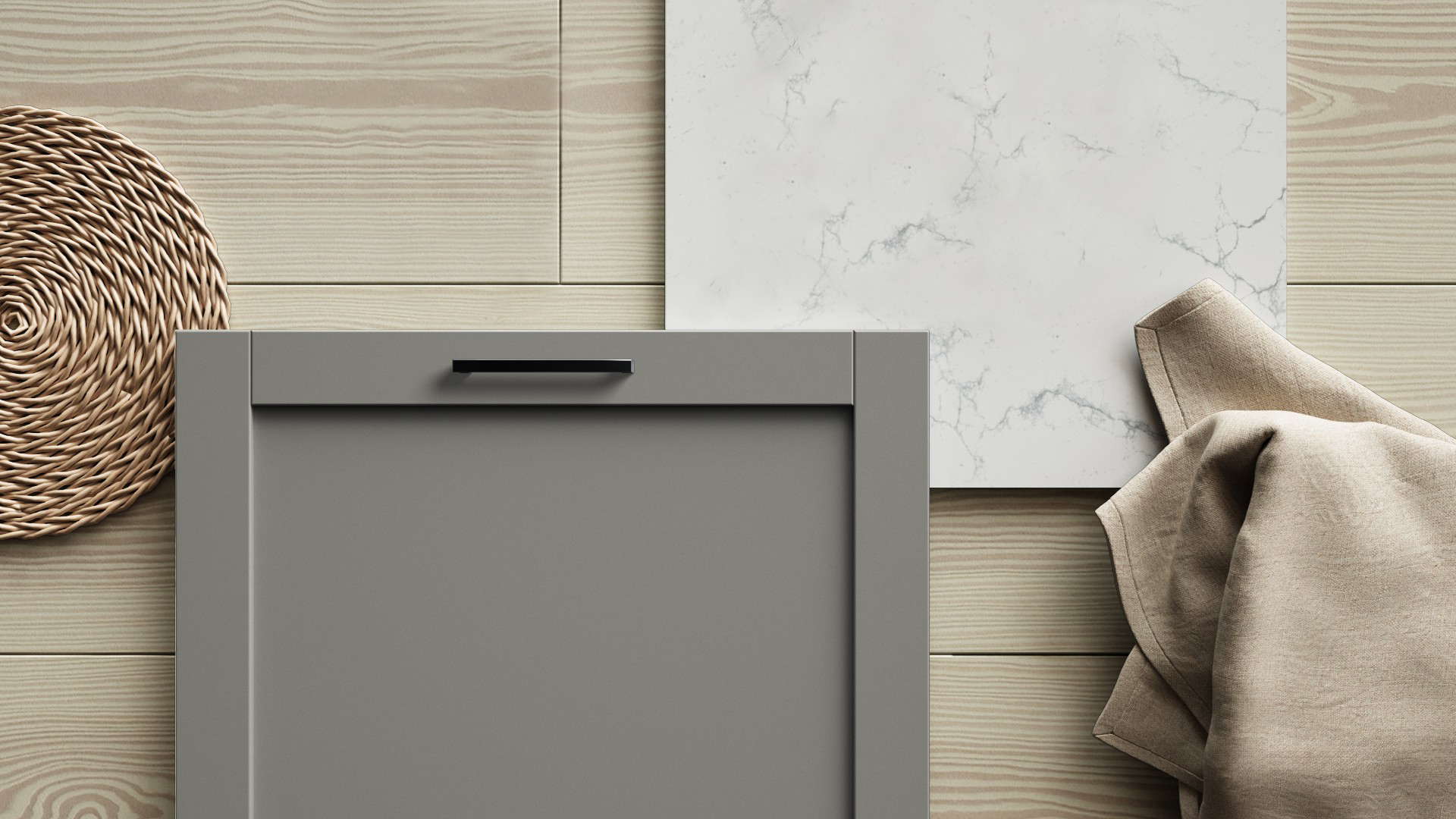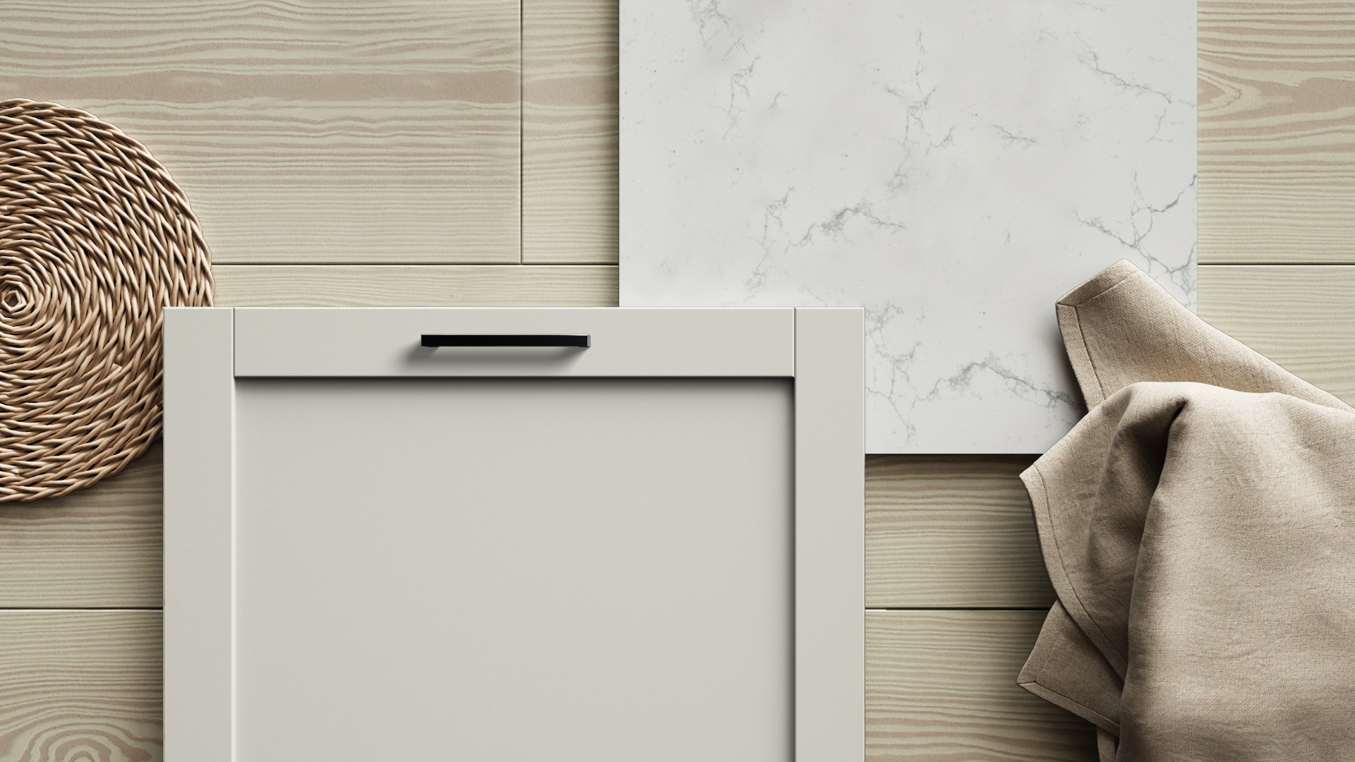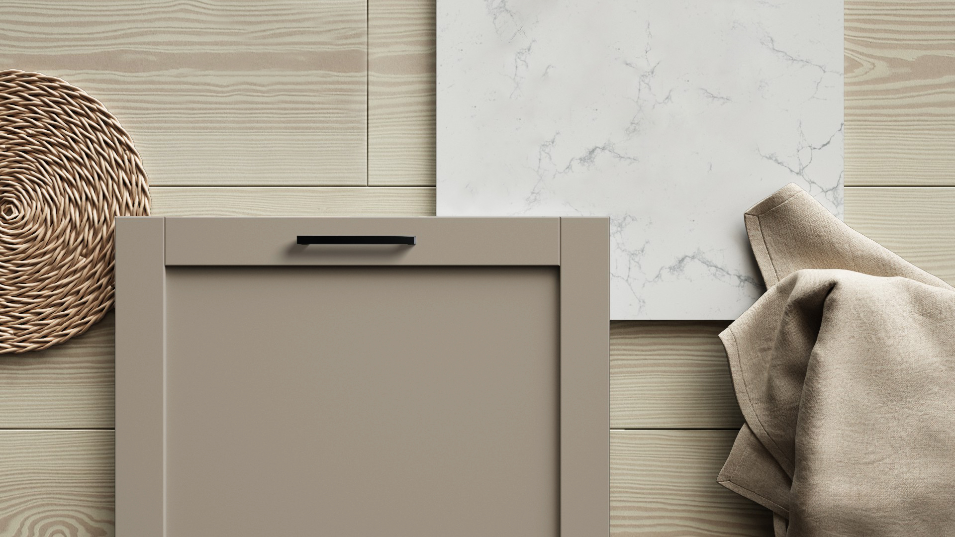 Målad lucka av 19 mm MDF-board med ram och slät spegel, svagt rundad kant. Levereras i alla kulörer mot kulörtillägg med några få undantag. Finns också i vitrinlucka med klarglas, med eller utan spröjs.