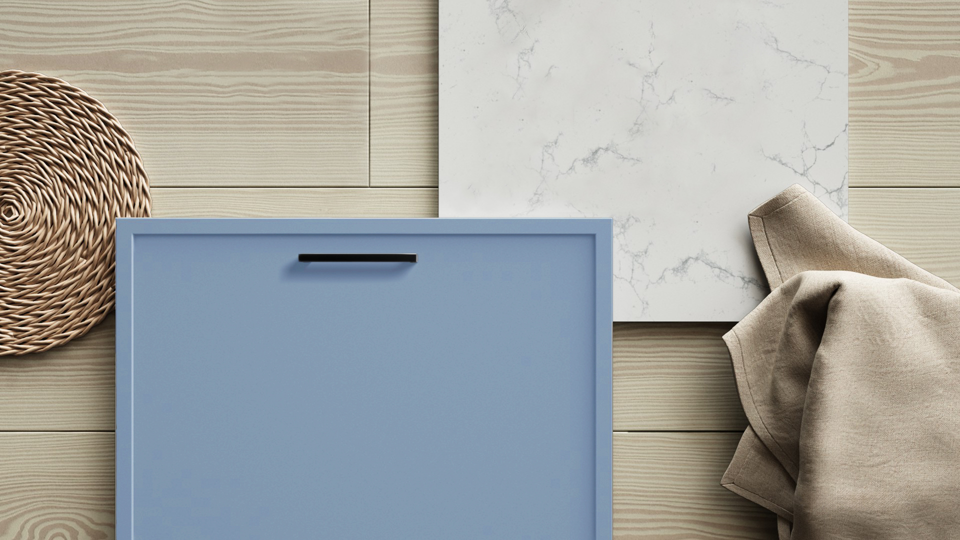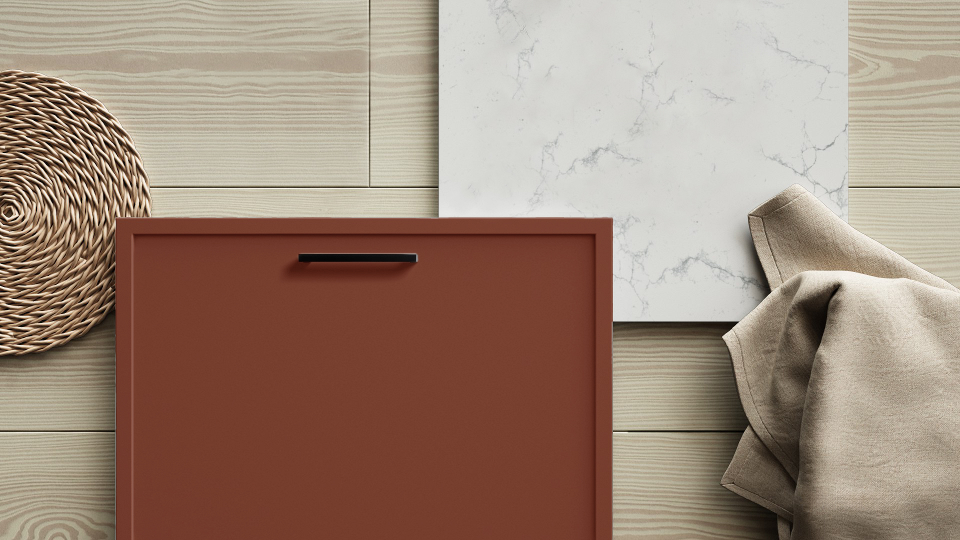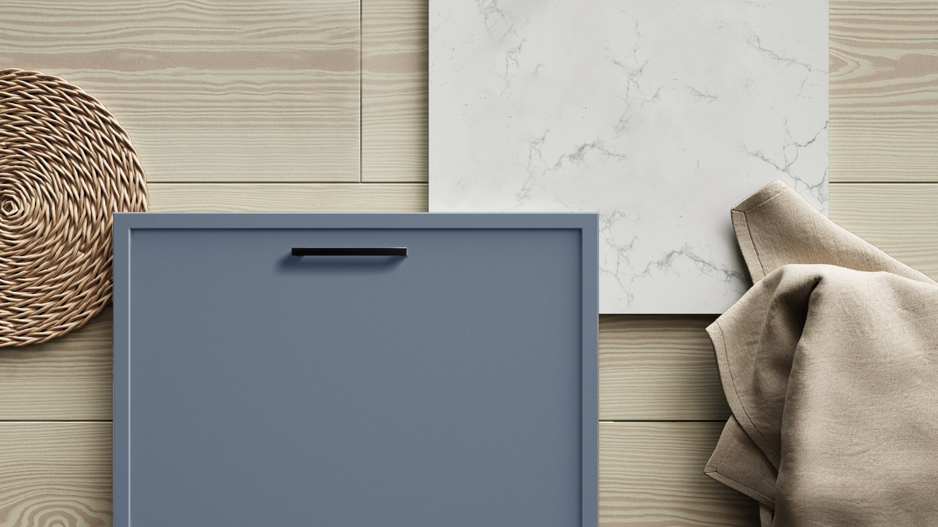Målad lucka av 19 mm MDF-board med smal ramprofil och svagt rundad kant. Levereras i alla kulörer mot kulörtillägg med några få undantag. Kan kombiners med Edit vitrin utan spröjs. Högskåp med Thea har tvådelad lucka.