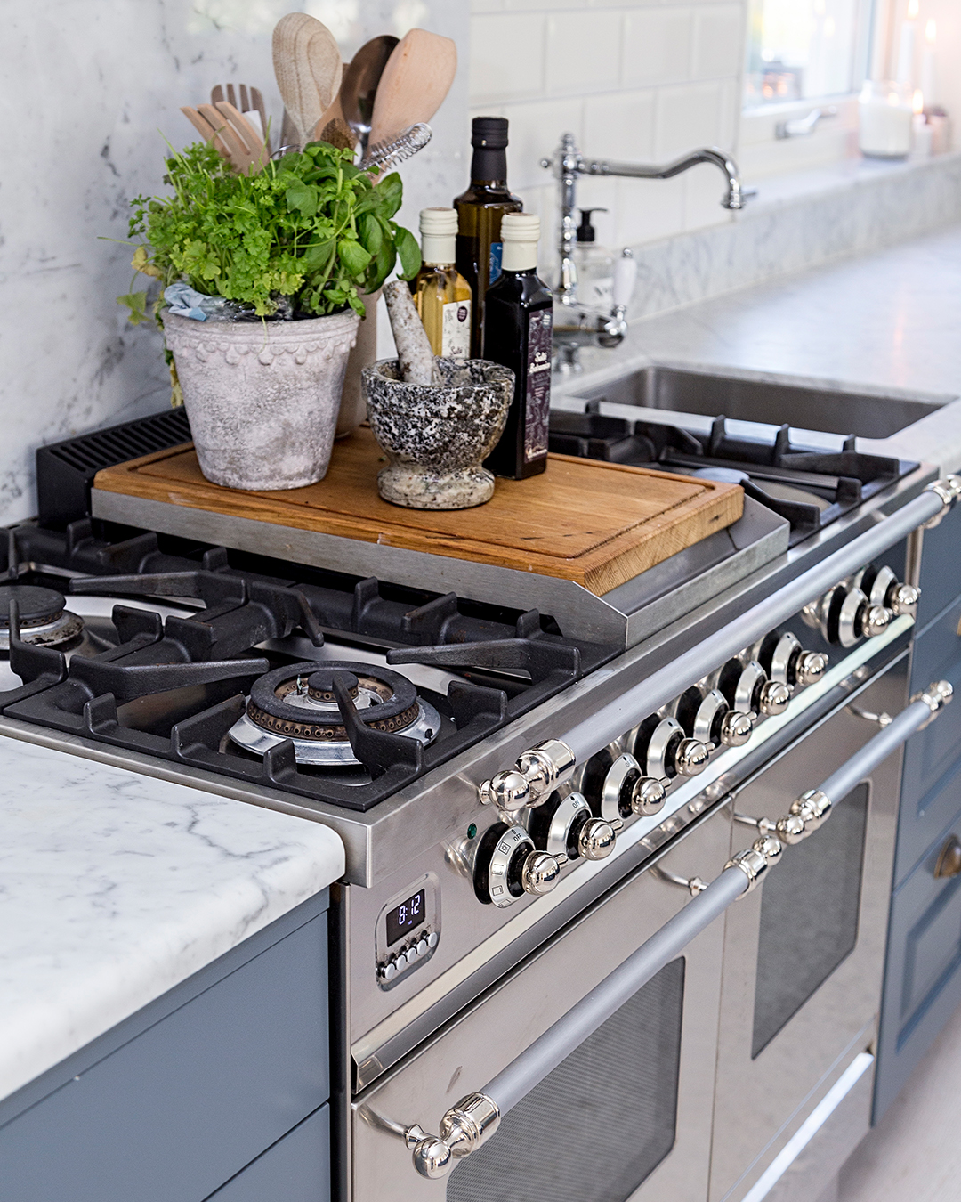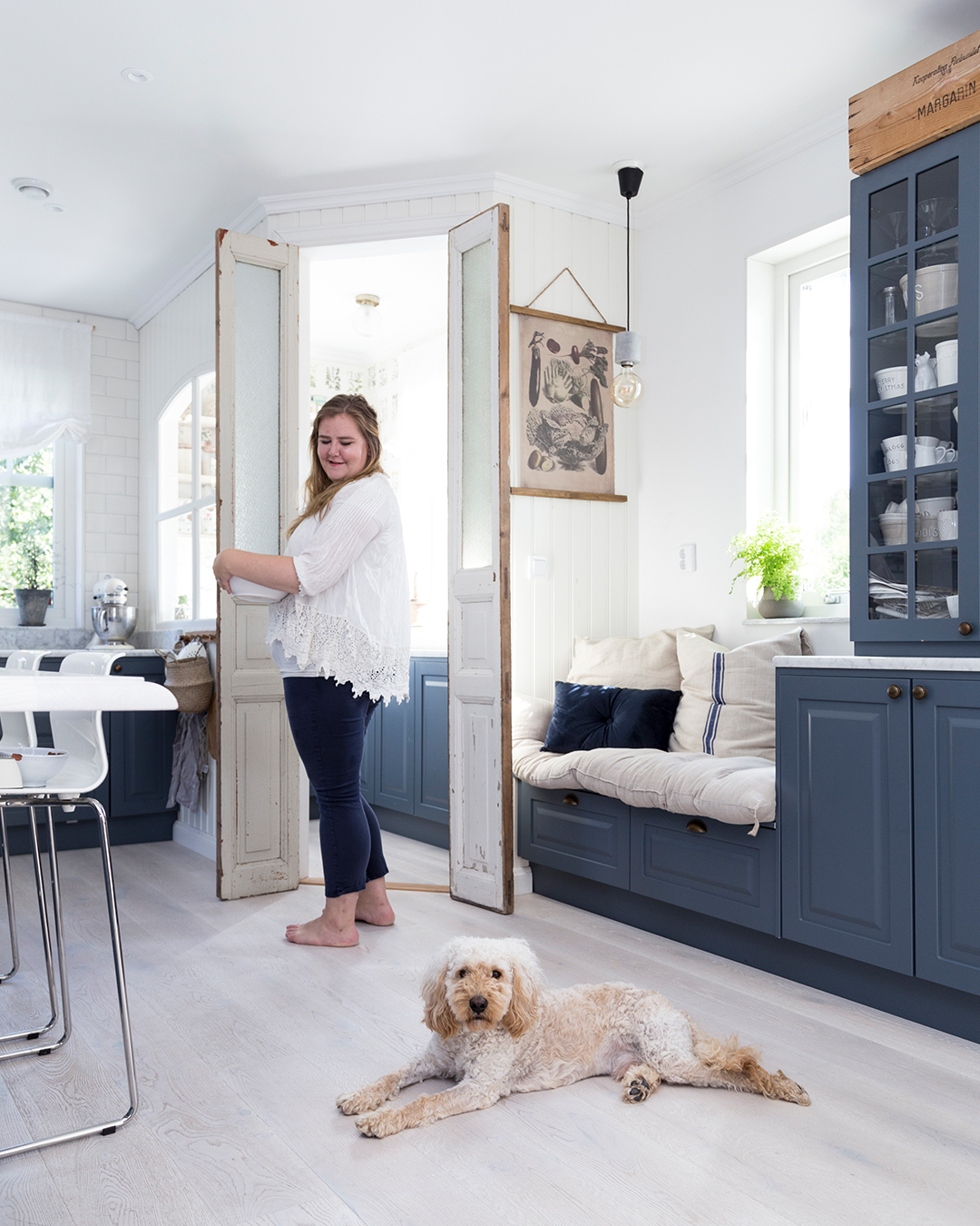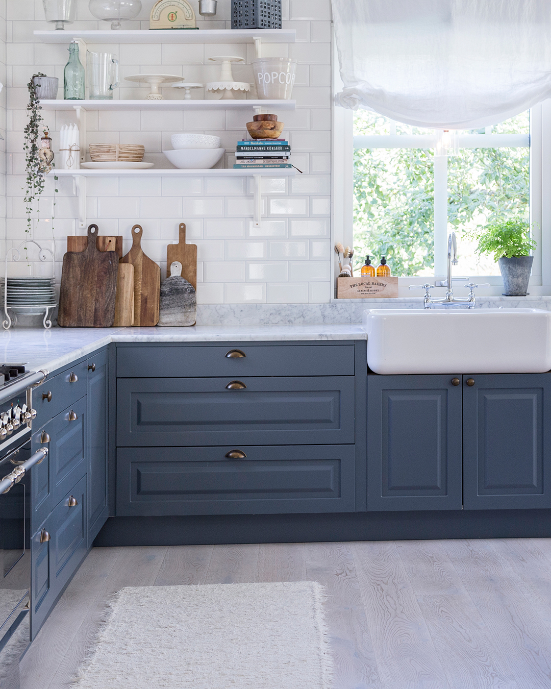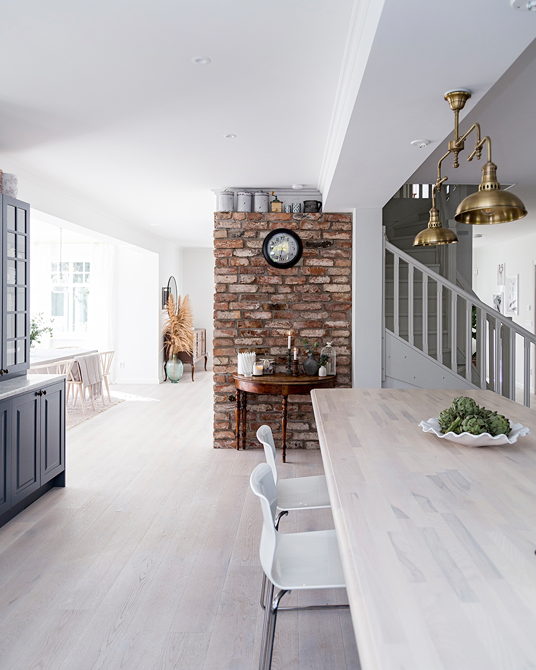 -Köket är huset hjärta. Här samlas man för måltider, pratar om hur dagen varit, gör läxor, hänger när man lagar mat och har gäster. Köket var det viktigaste av hela husbygget och låg långt upp på priolistan! Vi trodde från början att de skulle bli ett vitt klassiskt kök med marmor, men det slutade i något helt annat och det är vi så glada över!, säger Sandra.