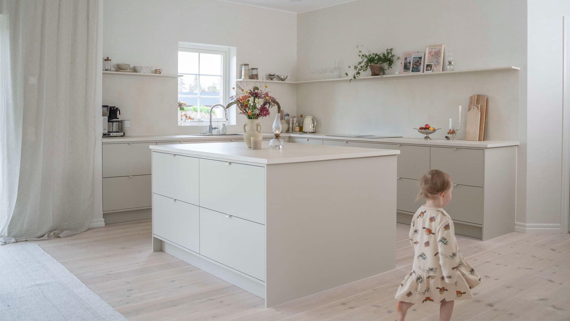 Hemma hos Hanna, Tim och deras döttrar, Junie och Elma, är köket hjärtat i hemmet. I huset som de flyttade in i våren 2023, beläget strax utanför Tidaholm, är köket en plats för både familjemys och kreativt skapande. Här bor de tillsammans med sin finska lapphund, Lexie i en miljö som speglar deras enkla, funktionella och stilrena designvision.