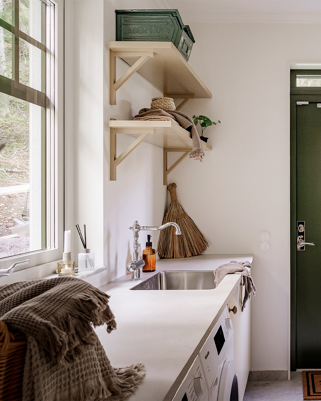 När huset byggdes 2021/2022 var visionen tydlig: ett öppet kök med platsbyggd känsla där många får plats. Resultatet? Ett harmoniskt hem där Vedum finns i både kök och tvättstuga – och där varje detalj är noga utvald.