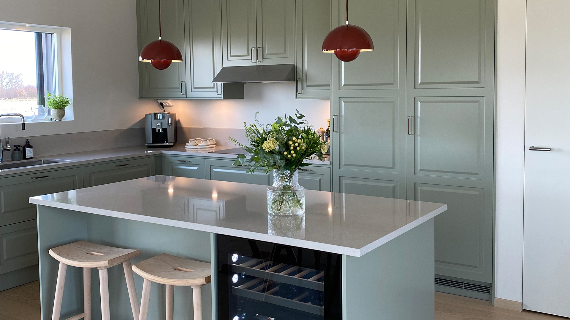 När Estelle och hennes sambo Hampus började planera sitt nya hem fanns tre tydliga ledord med dem genom hela processen: inbjudande, tillåtande och hemtrevligt. Med hjälp av Vedum skapade de ett kök som bär just de värdena – en plats för både vardag och umgänge, där både vuxna och barn får ta plats.