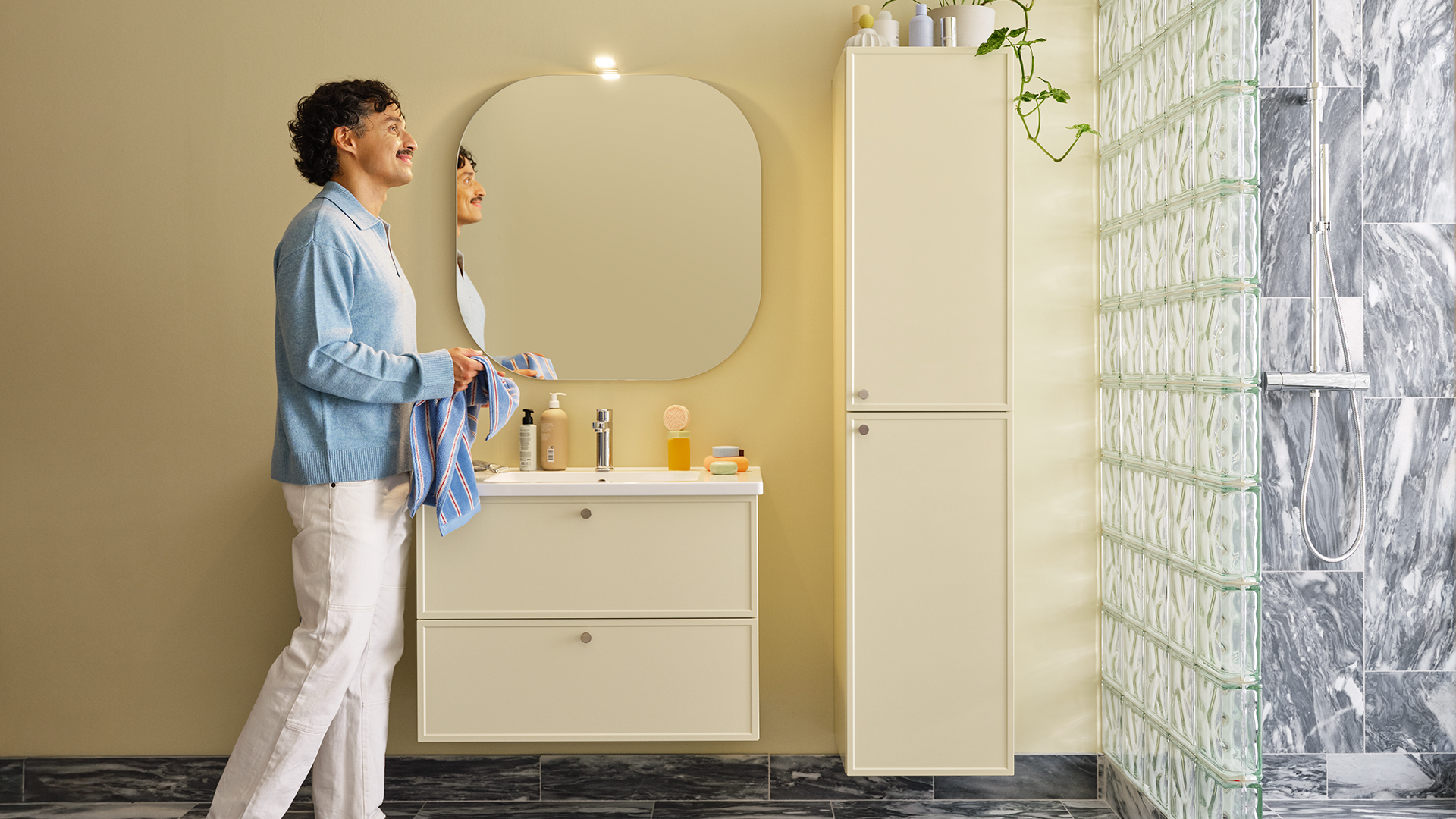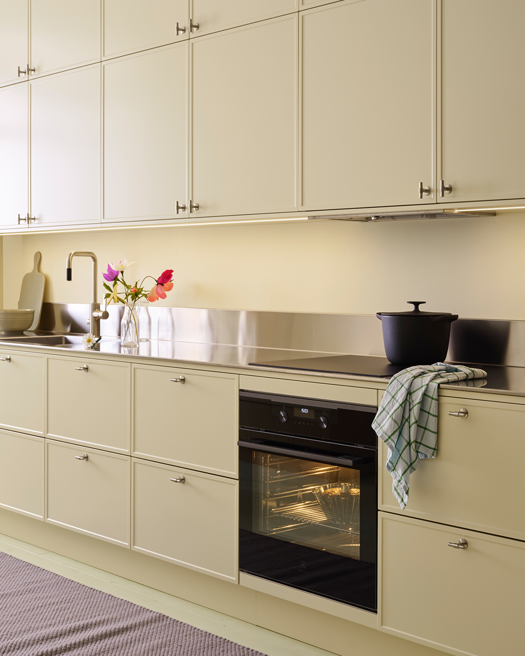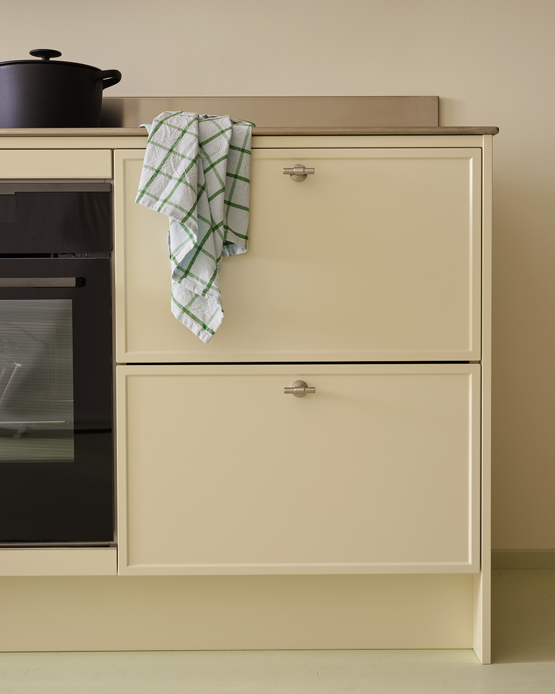 Genom att addera textur, form och material vill han skapa han en varm och inspirerande helhet där varje detalj känns viktig och andas omtanke. Det är en ambition som vi delar och känner igen oss i. Därför är vi glada över att Dennis tillsammans med oss skapat våra nya cremegula kök och badrum, så vi kan berätta nya historier om vår gemensamma omtanke för det personliga hemmet.