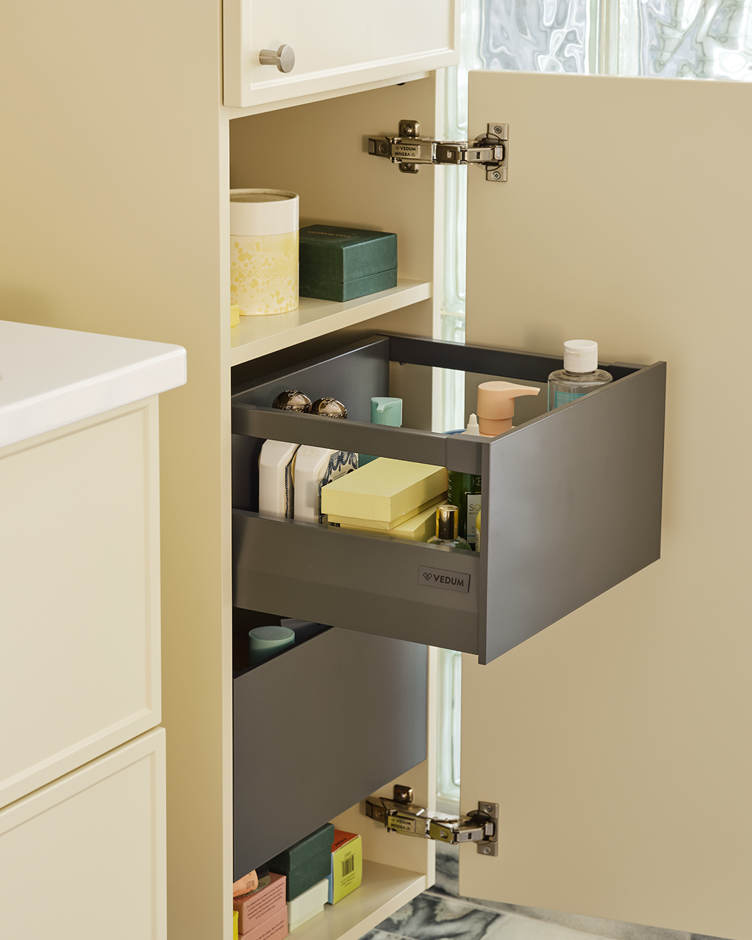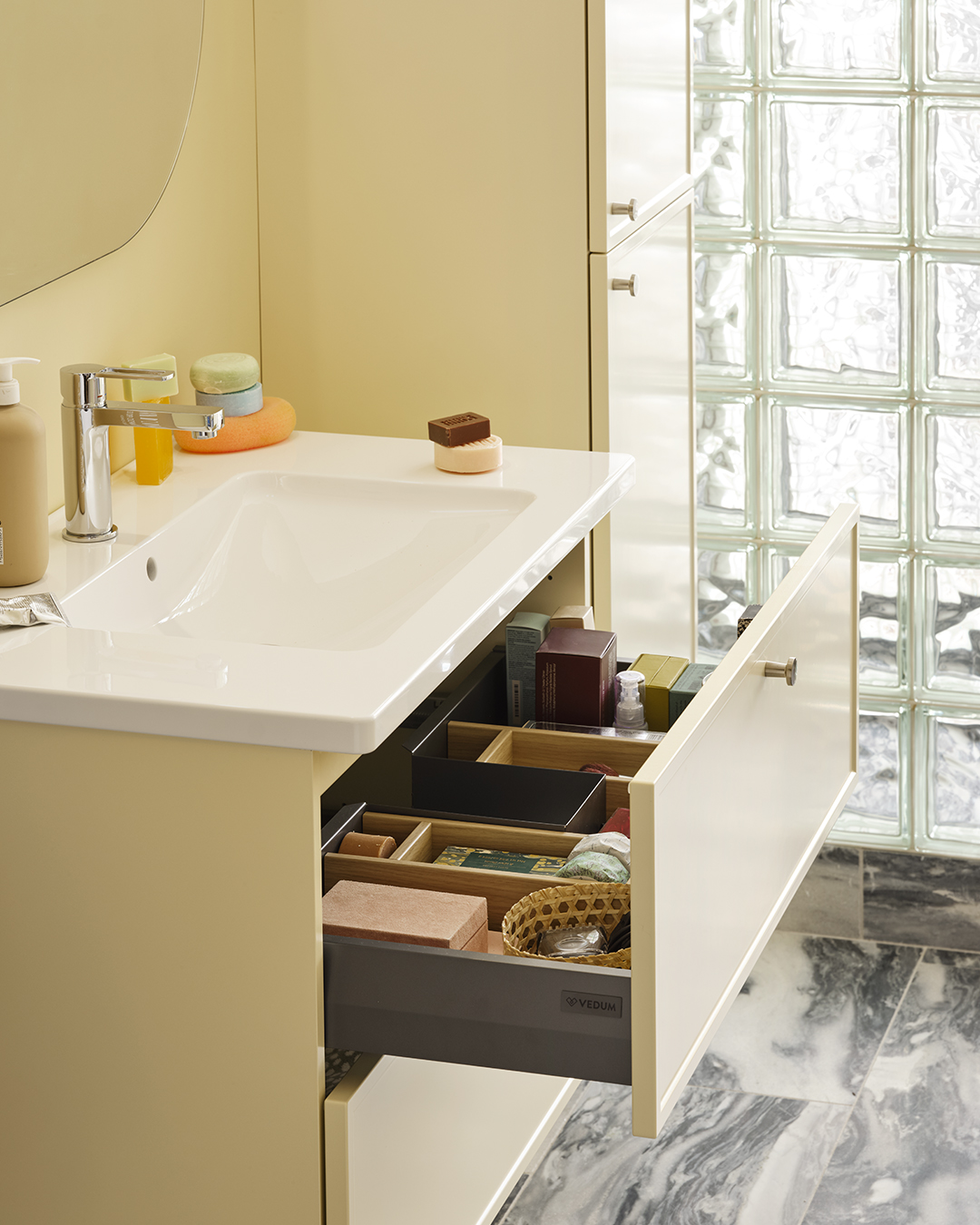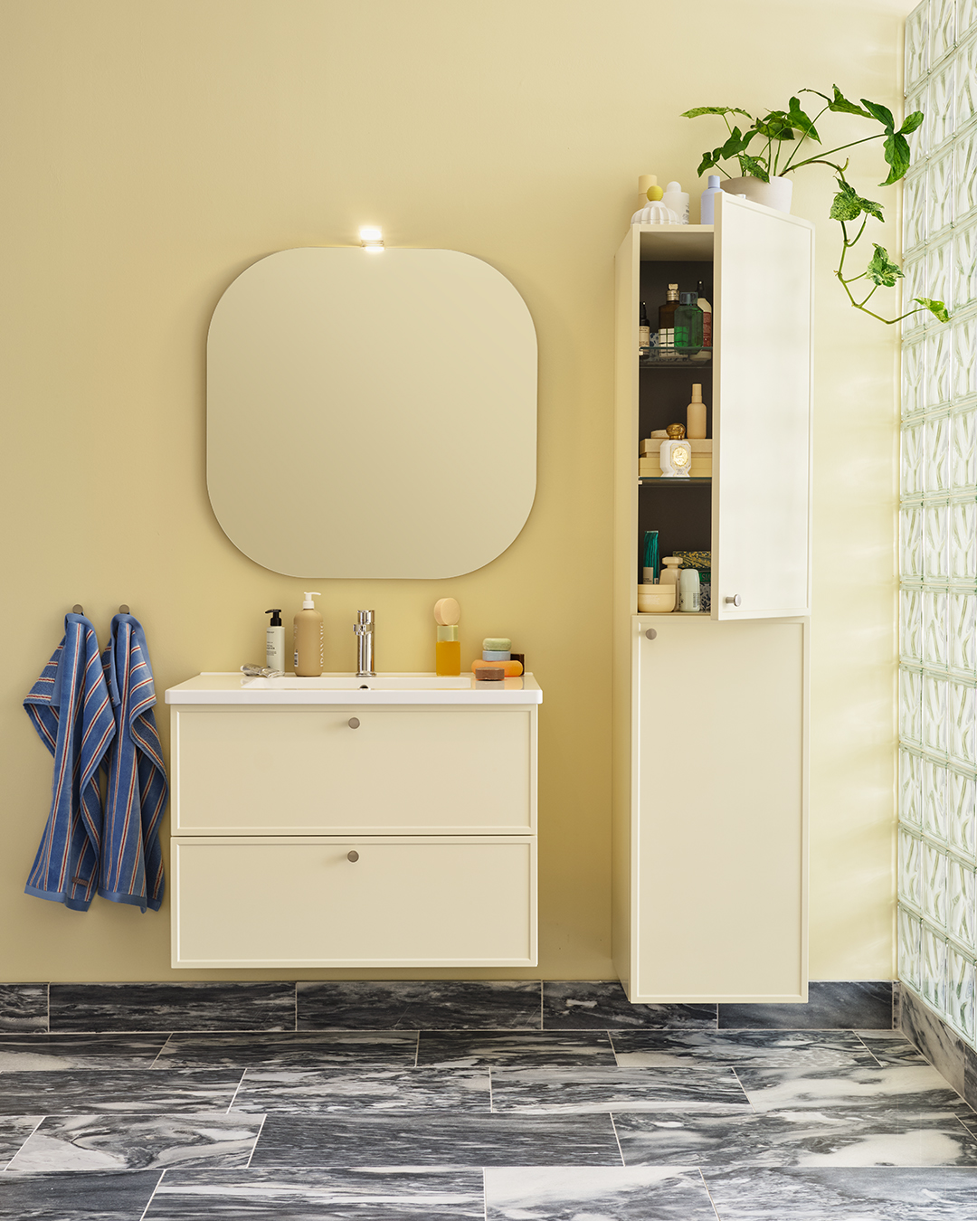 Genom att addera textur, form och material vill han skapa han en varm och inspirerande helhet där varje detalj känns viktig och andas omtanke. Det är en ambition som vi delar och känner igen oss i. Därför är vi glada över att Dennis tillsammans med oss skapat våra nya cremegula kök och badrum, så vi kan berätta nya historier om vår gemensamma omtanke för det personliga hemmet.
