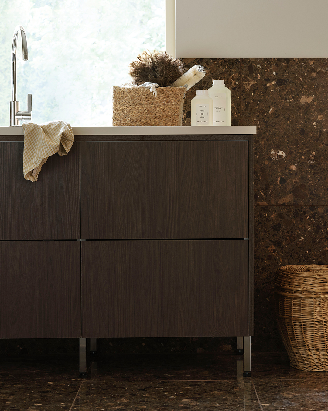 En nyhet för tvättstugan är den Svanenmärkta luckan Ilse. Andra nyheter är tre Svanenmärkta laminatbänkskivor och att vår omtyckta badrumslucka Thea också kommer i vårt tvättstugesortiment. Vi lanserar även det nya väggsystemet Ax och nya skåpinredningar så att all inredning nu är enhetligt antracitgrå.