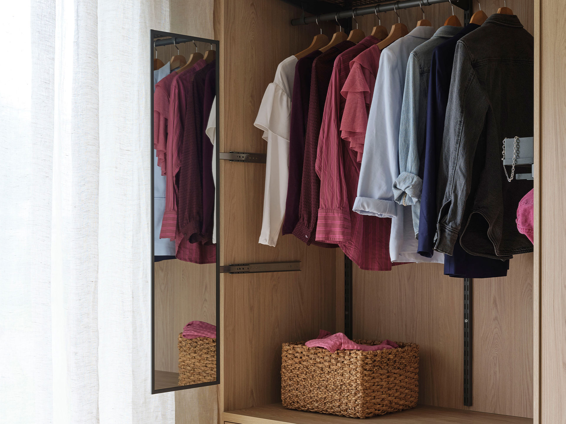Spegel 180° Ven, utdragbar sidomonterad i skåp.