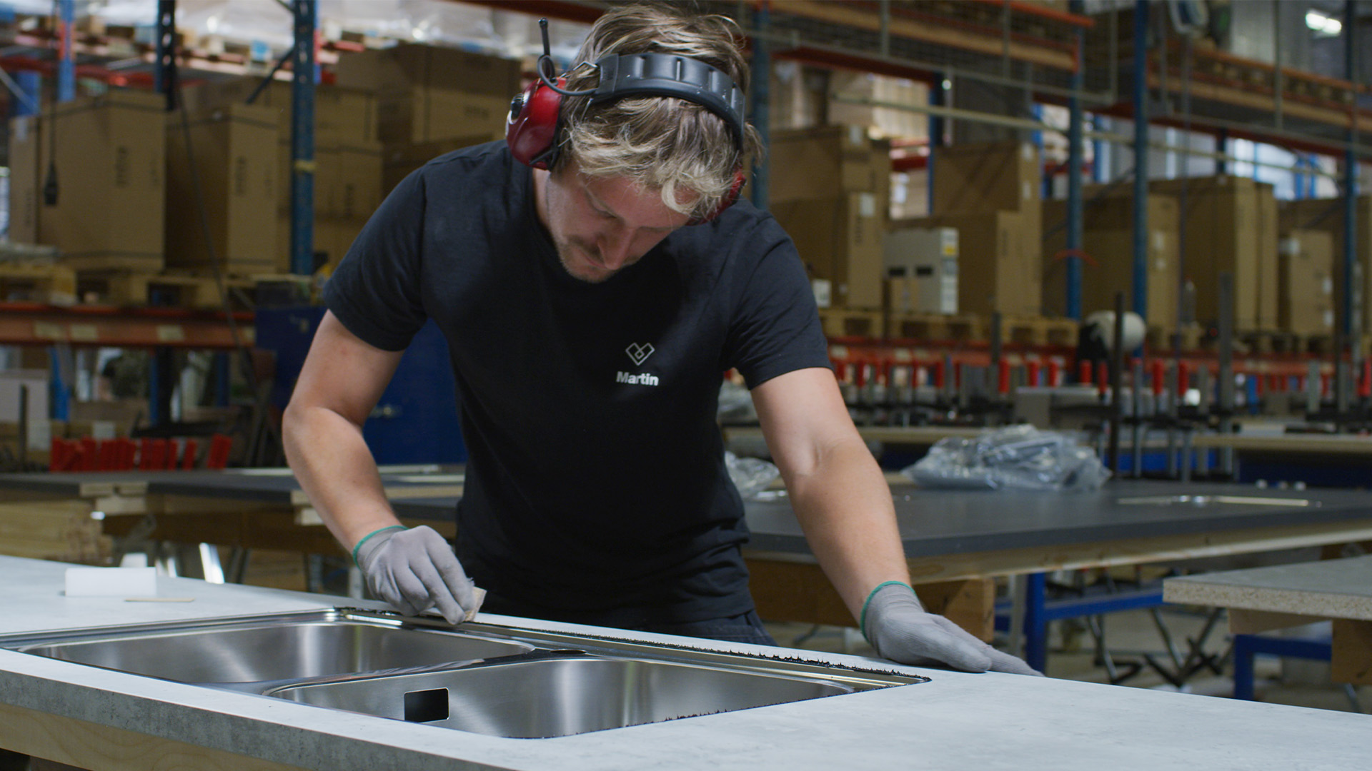 I över ett sekel och i fyra generationer har vi tillverkat inredning här i Vedum. När du bestämmer dig för att köpa kök, badrum, tvättstuga eller förvaring från oss kan du därför alltid vara säker på att du är i goda händer. Vi gör allt vi kan för att hjälpa dig med alla funderingar och praktiska frågor som kan dyka upp på vägen, från idé och en första kontakt med oss till produktion och leverans. För att du ska få en bättre förståelse för hur det går till när du köper inredning från oss på Vedum har vi tagit fram en film som förklarar hela processen. Att hela kedjan utgår från Vedum, där allt började för 100 år sedan, är vi såklart extra stolta över!
