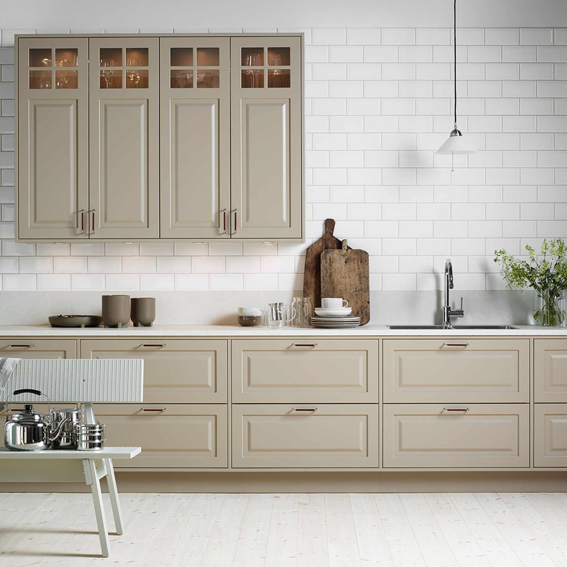 Alice finns även som vitrinlucka med spröjs eller toppvitrin, vilket ger möjlighet att skapa variation och ett luftigt intryck – eller förstärka det klassiska uttrycket ytterligare. Ett fint sätt att ge köket en personlig prägel.