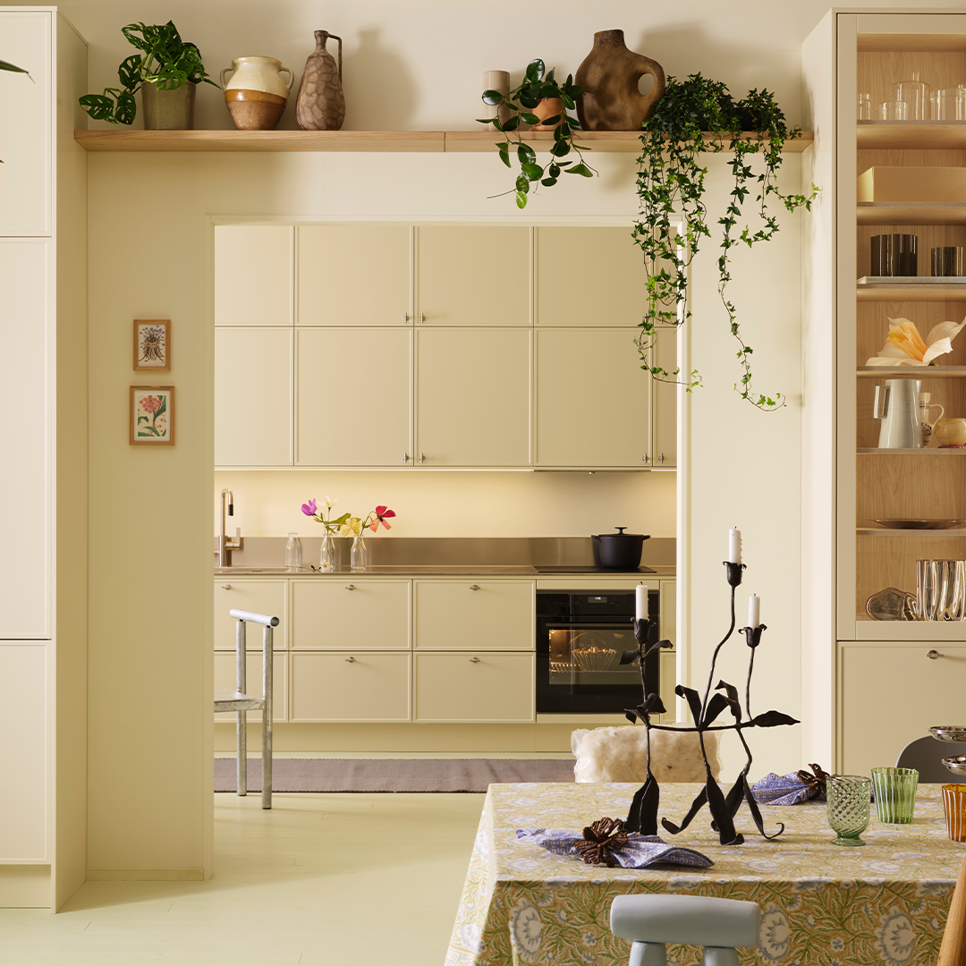 För dig som vill kombinera uttryck finns även möjlighet att para Thea med Edit vitrinlucka utan spröjs – en fin balans mellan öppet och stängt, mellan modernt och traditionellt.