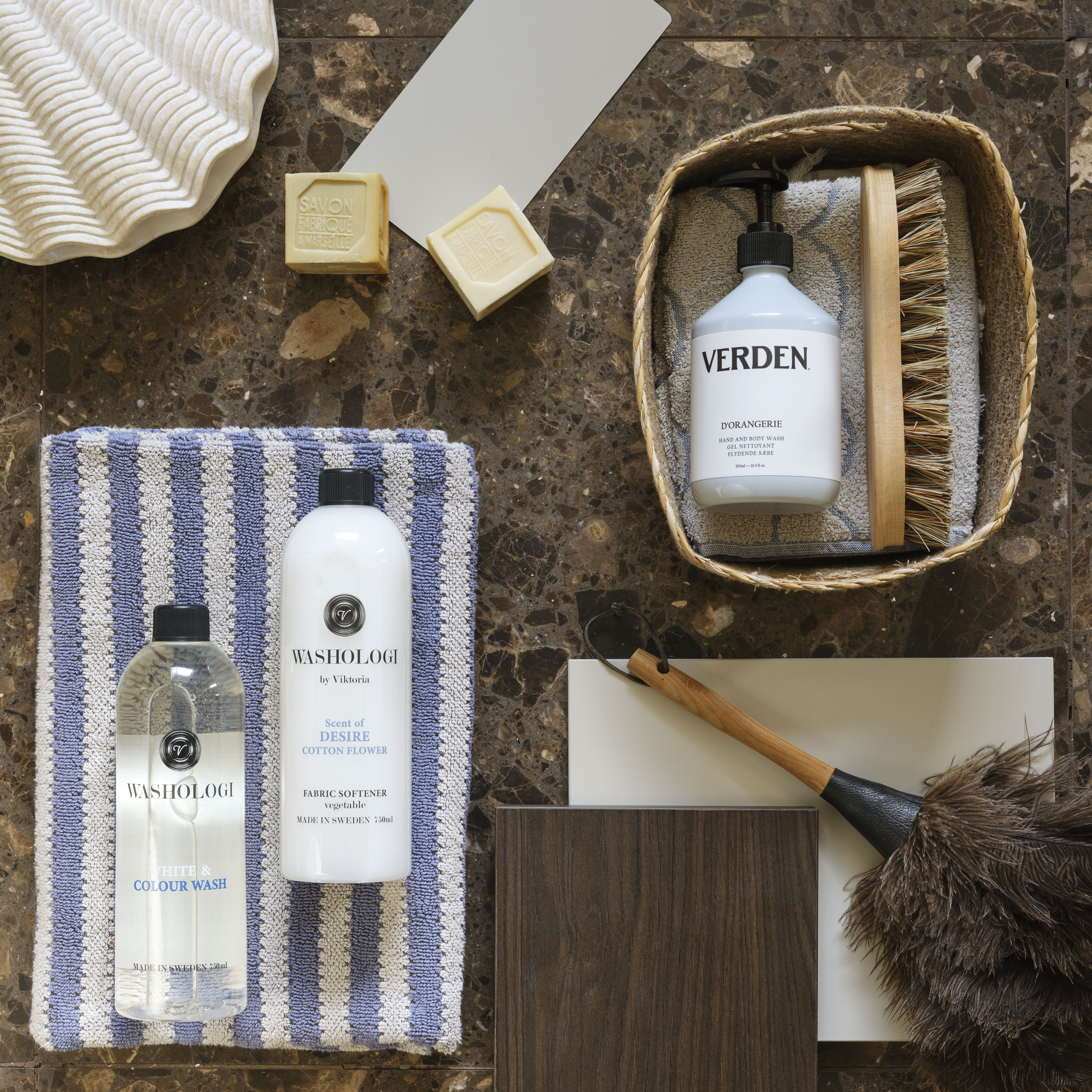 Den nya Svanenmärkta melaminluckan Ilse beige och Ilse brun ek gör tvättstugan till en lugn oas. Garderobsvägg, upphöjda vitvaror och bra arbetsytor på bänkskiva gör vardagen enklare. Hyllplan med plats för småsaker och lättillgängliga tvättkorgar i det öppna hörnet förstärker känslan av bekvämlighet. Ett fint terrazzogolv och stänkpanel knyter ihop helheten.