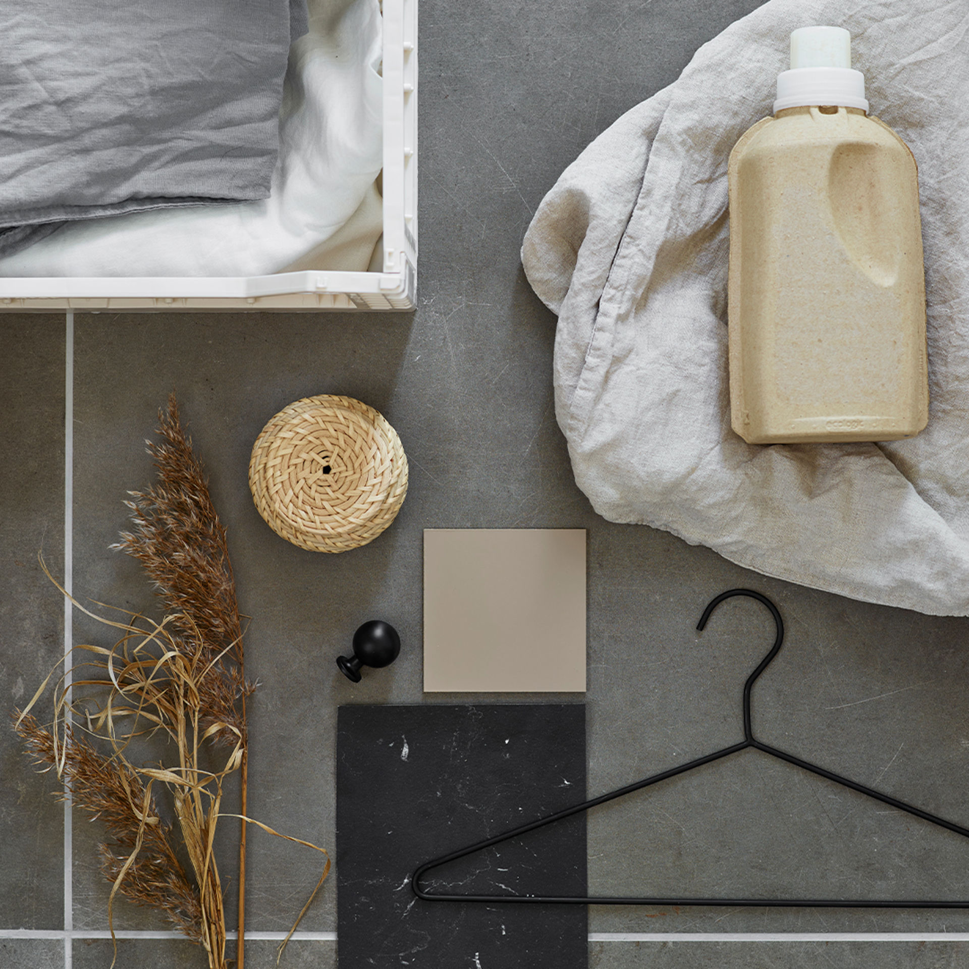 Funktionell tvättstuga med distinkta detaljer och generös förvaring.